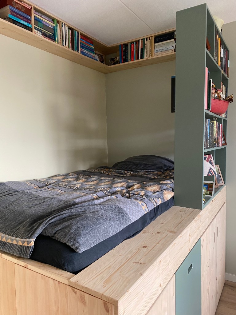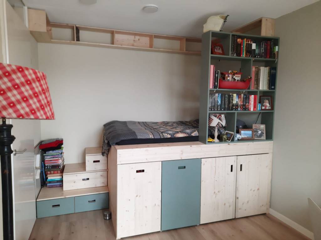 | Omschrijving | Verhoogd bed met opbergruimte |